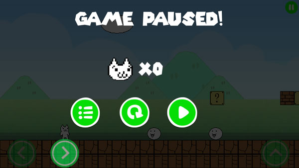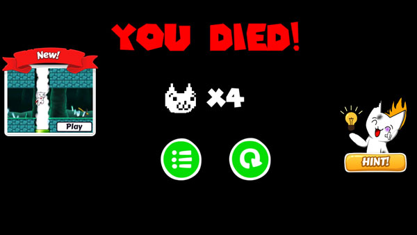 猫里奥最可怕的是游戏难度要比马里奥高出几个数量级,玩的时候会遇到各种意想不到机关陷阱,有时候明明平摊的地面突然会塌陷,什么都没有的天空突然出来两个不明飞行物把你砸死。总之生活处处是陷阱,关卡不多,但通关不易,兄台祝好运,每一个关卡都让你意想不到,建议心态不好的玩家不要轻易尝试。游戏已解锁全部关卡,可以随意体验,感兴趣的朋友欢迎下载游玩。