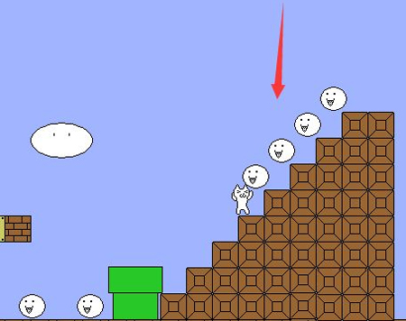 前进到第一个绿色管道前会有一个小怪冲出,等小怪飞走再跳过去。