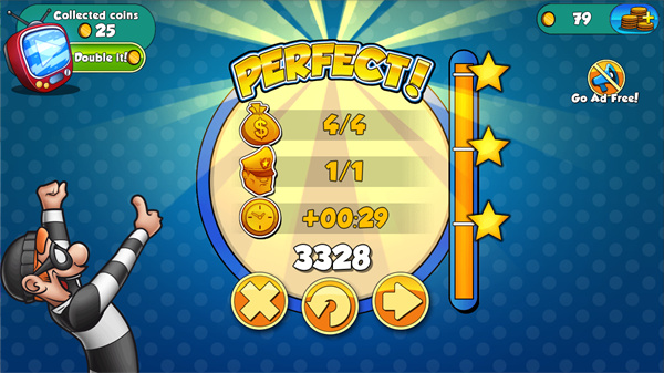 游戏中会有着大量幽默有趣的故事情节和行窃时的搞笑遭遇,拥有丰富的关卡等你来玩耍,想要顺利的拿到东西,就非常考验玩家的技术。除此之外,神偷鲍勃2最新版还拥有非常多的道具供你使用,能够帮助你更快的通过关卡,甚至能够躲避各种警报机关和巡视的人员,还有凶恶的狗等等,甚至是像忍者一般,在木箱、花盆、地板裂缝或者是马桶里进行躲避,趣味十足。
