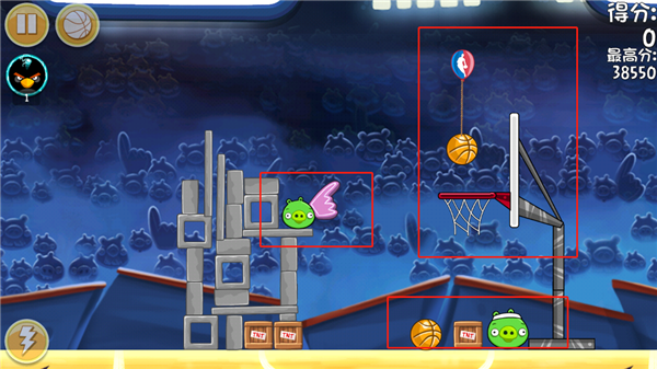 4、游戏中不管是篮球还是小鸟落进篮筐都会额外获得5000的分数,因此玩家在考虑撞击的同时还要考虑如何才能让更多的篮球落进篮筐中,这样才能赢得更高的分数。
