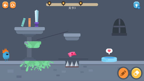 第3关:在左上角画一条线挡住武器的掉落,下面在画一条线防止被刺到。