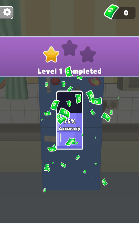 5、最后,当成功把冰箱的储物柜塞满后即可通关,并根据获得星星来奖励钞票;