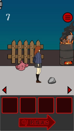 妹子先前进,然后猪头丢到妹子身后让痴汉吃了。再在鸟前面放石头,妹子经过会被石头绊倒,鸟飞起来,妹子顺利回家。