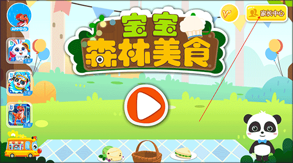 1、下载安装好宝宝森林美食,打开软件的主页面,点击右上角的家长中心。