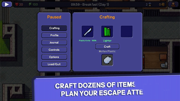 逃脱者中文版是一款经典的越狱主题益智冒险游戏,画面采用怀旧像素风格,玩法丰富又烧脑。玩家扮演囚犯,得想办法利用各种工具和狱警斗智斗勇,还要和其他犯人和警卫搞好关系才能成功逃脱。游戏移植自PC端,手机版操作更符合手机特点,机关设计更精细,还有许多新道具和独特的玩法,增加了趣味性。