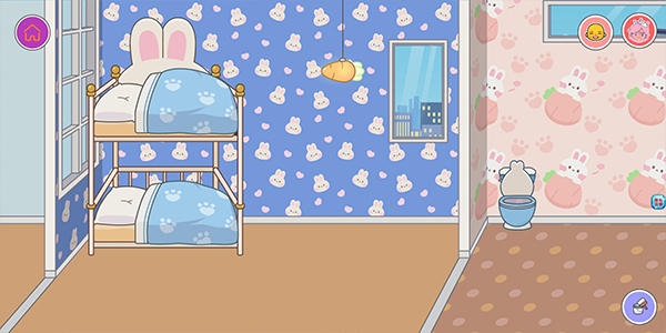 游戏中的兔子公寓可多了,不是只有一处的,玩家打开游戏时可以移动画面找到自己心仪的兔子公寓进去即可,譬如将游戏主页滑至最左侧就可以找到一所兔子公寓了