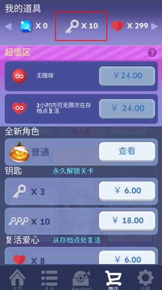 2、可以看到现在钥匙是0的,点击购买18元的钥匙;