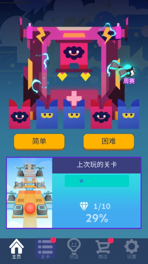 1、首关“云”的场景下,没有太难的拐角和过多的障物,沿着直线载球地面跑,不要碰到两侧凸起的方块,达成满钻通关较易,此图景只需一星就达标。