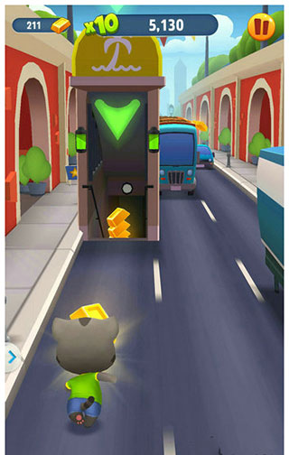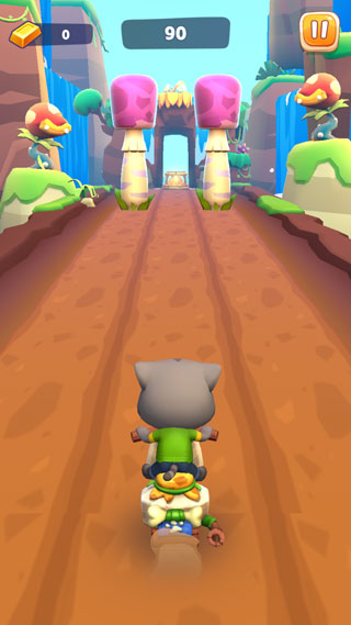 2、玩家扮演一只汤姆猫,你还会有很多的伙伴跟你一起跑酷,会说话的狗狗本,汉克金杰等有趣的动物们;