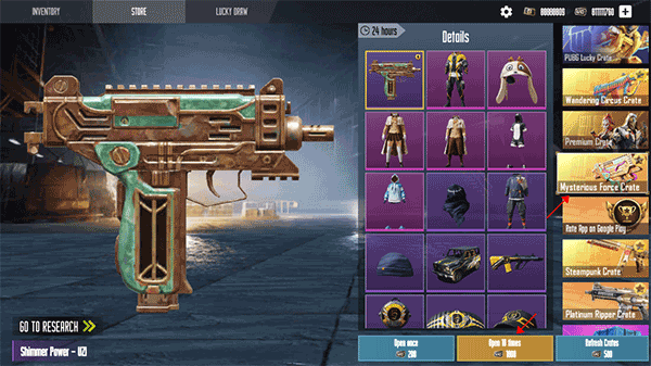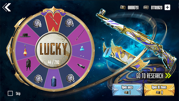 你可以一次旋转1到10次。有一个可升级的枪SCAR-L在两种类型的皮肤。