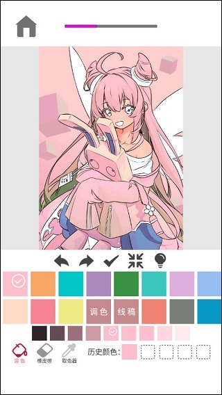 我挺喜欢这种游戏,因为不需要太多技巧,只要点点颜色就能完成一幅画,感觉特别放松。如果你是绘画小白,系统还提供自动上色功能,直接点击空白区域就能完成;如果对调色有心得,还能自己搭配颜色,发挥创意。游戏里还有回撤、橡皮擦和取色器这些小工具,操作起来挺方便的。