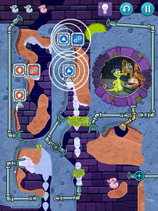 当然,你也不用担心不会玩,小鳄鱼爱洗澡2整个的操作过程简单有趣,你只需要避开各种障碍,利用各种机关把水引到小顽皮的浴室、把毒水引到大顽固的房间、把蒸汽引到爱丽的音乐室。这个过程一定要认真仔细的观察,思考到每一步会为下一步乃至于下几步的后果,因为在深思熟虑之后,往往会让你事半功倍。