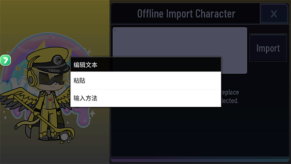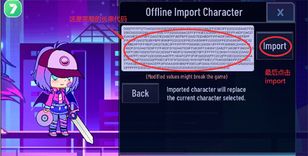 3、框里就会出现长串的代码,这么长才是完整的,最后点击"Import",就可以使用别人分享出来的人设啦!