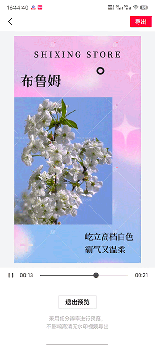 4、最后预览觉得没问题后点击右上角的“导出”按钮就可以将视频下载保存。