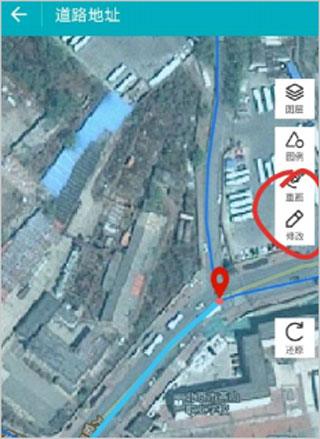 6、若底图道路数据与实际情况不一致,进入信息填写界面,点击道路起点或终点定位图标,进入地图界面;