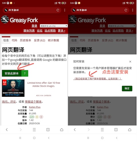 Greasy Fork 是一个非常受欢迎的脚本分享站,有大量的开发者在这里分享脚本。从这个网站安装脚本也很简单,直接找到你想要的脚本安装页面,点击”安装此脚本”。(第一次在这个网站安装的话,会弹出让用户安装用户脚本管理器的提示,X浏览器内置脚本管理器,直接安装即可)。