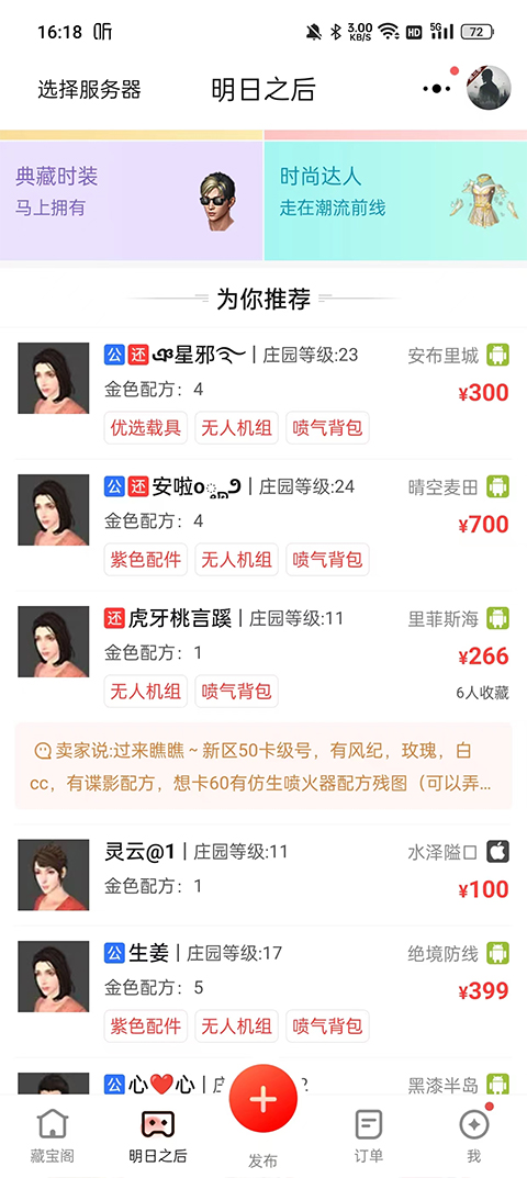 如果你已经是一名骨灰级明日之后玩家,但是你已经不想玩这个游戏了,想要将这个账号出售,但是你又不知道自己账号的具体价值,明日之后藏宝阁app中拥有专门的账号估价板块,让你可以最大化自己账号的价值,相信不管是对于买家还是卖家来说,这都是最佳的交易平台。