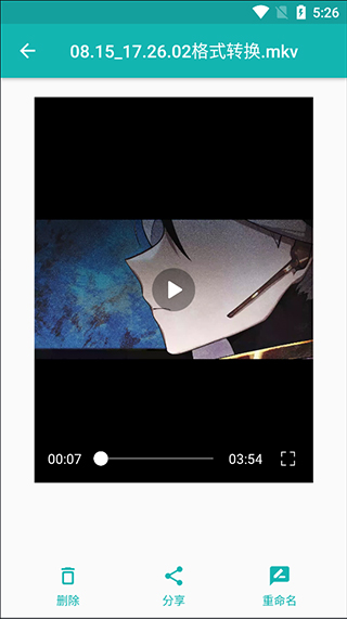 5、等待数秒后,格式就转换成功啦,你可以直接分享视频或者对视频进行重命名。