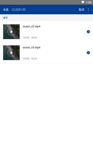 3、长按视频可以批量选择