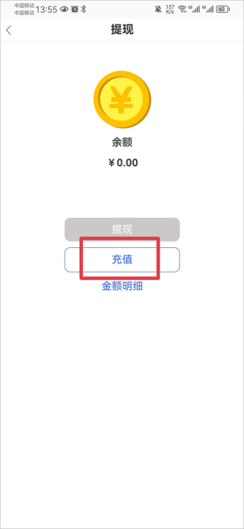 2、进入后点击充值