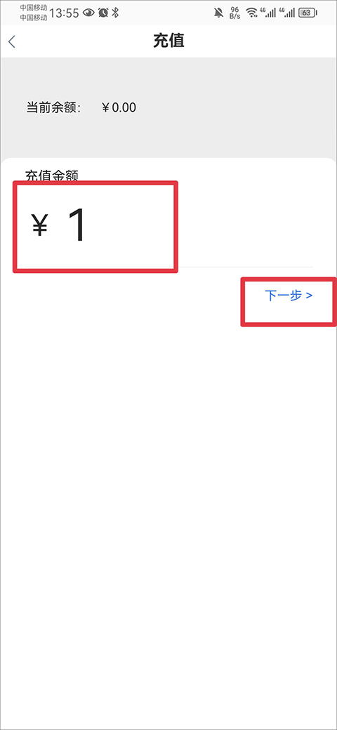 3、输入充值金额后点击下一步
