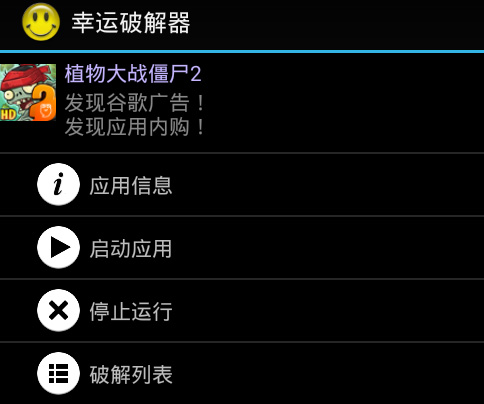 2、长按软件选中程序后在弹出菜单中选择破解即可;