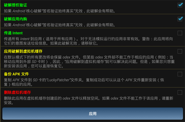 不仅如此,幸运破解器还拥有多重破解、移除授权验证、破解应用、游戏的内购、更改应用组件等强大的功能,在游戏方面,可以解锁所有资源、所有角色和级别,并获得免费的内购授权,而不必花任何资金,功能十分的强大,有需要的用户欢迎下载体验。