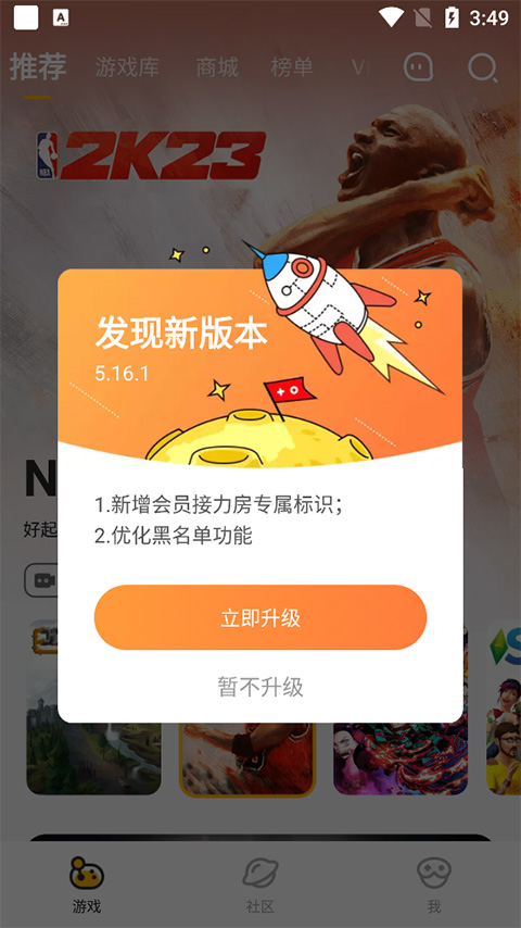用户在本站下载的菜鸡游戏旧版本5.9.2是可吧阻止更新的,其它的老版本是无法阻止更新的,用户打开本下载站下载的这个旧版本后进入游戏就会弹出更新提示,用户只要点击【暂时不更新】即可阻止更新