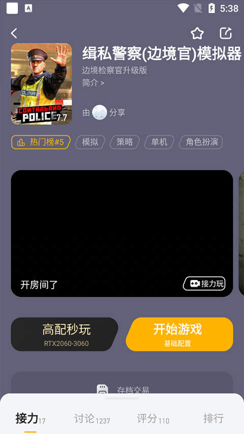 1、打开这个应用后就可以选择或搜索出自己想玩的游戏,在打开的游戏页面中点击【开始游戏】即可