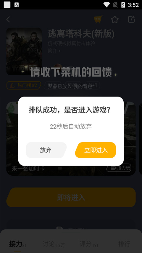 2、观看一个小广告即可获得免费时长,并且进入排队状态
