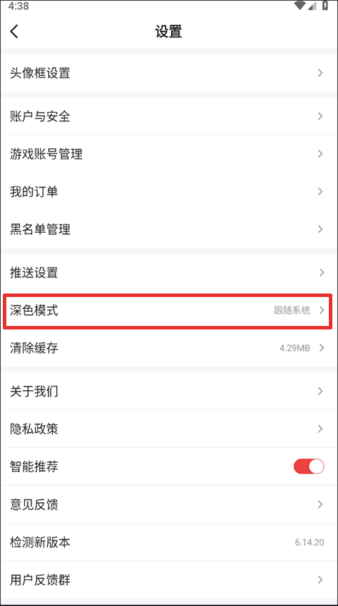2、在设置界面中找到并点击“深色模式”按钮选项;