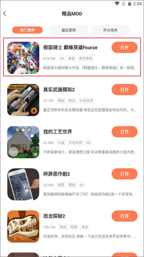 1、打开app之后默认进入【首页】,这时候你需要找到“精品MOD”和“玩家分享”,这里面都是包含了你想要获取的破解版游戏资源。