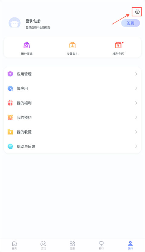 1、在应用内“我的”页面中点击“应用管理”