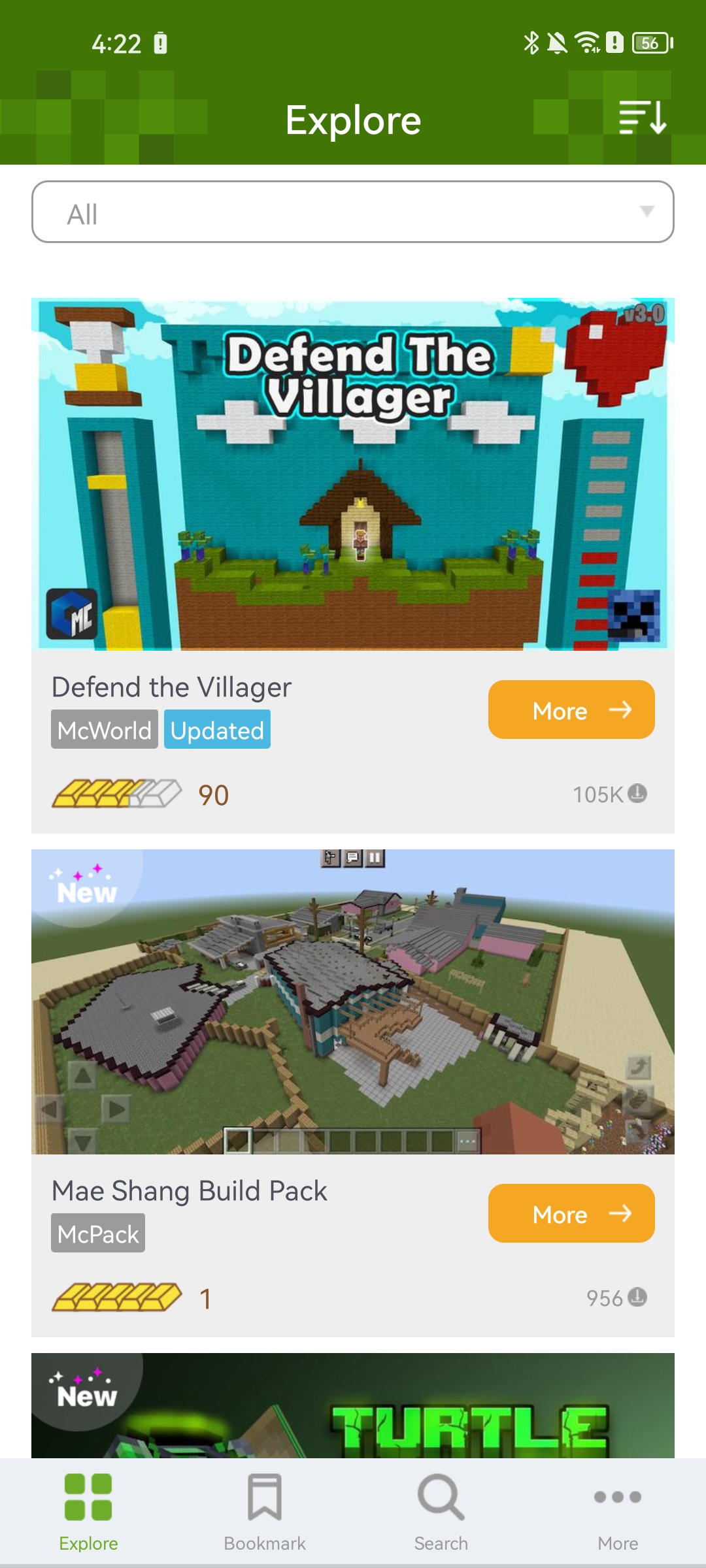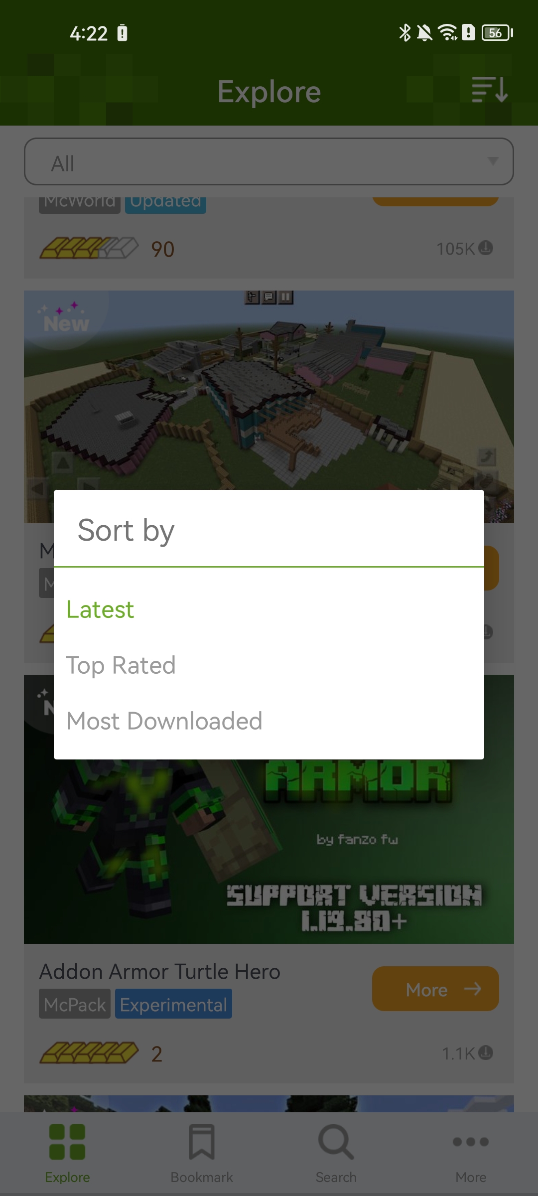 1、进入我的世界addons后,在主页【explore】中可以随便点击一个主页的地图模组或是找一个自己喜欢的模组