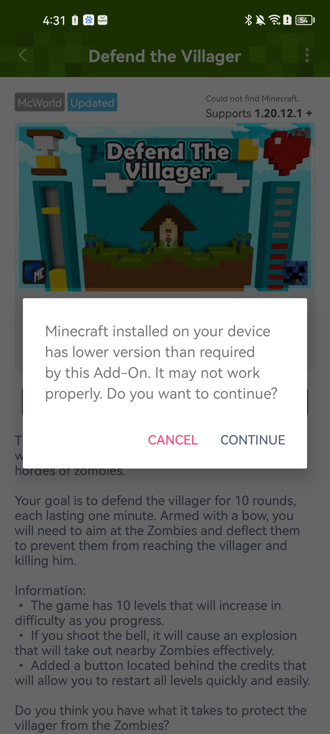 4、在此界面点击【CONTINUE】,完成导入后会自动跳转至我的世界游戏,玩家就可以上线畅玩啦!