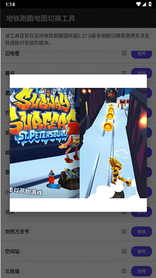 注意:该工具目前仅支持地铁跑酷国际服2.37.0版本进行地图切换,若使用无法生效请核对安装的版本。特别注意事项: