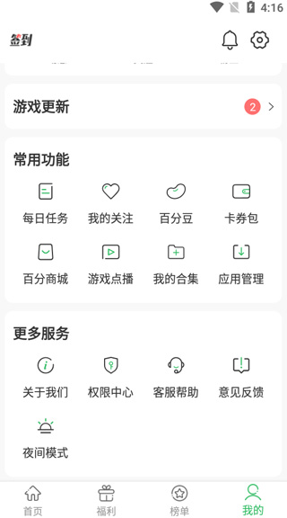 5、点开我的,有每日任务、我的关注、卡券包、百分商城等功能;