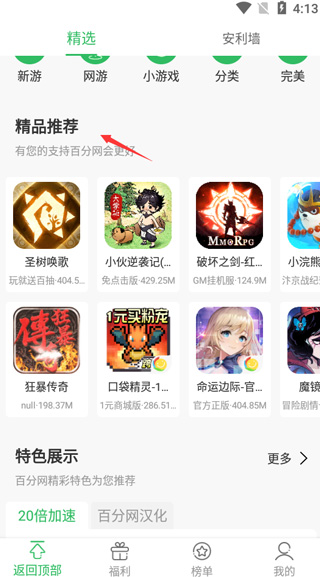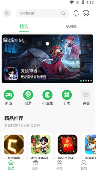 2、在首页,玩家可以下载新游、网游、小游戏等,还有各种精品游戏推荐;