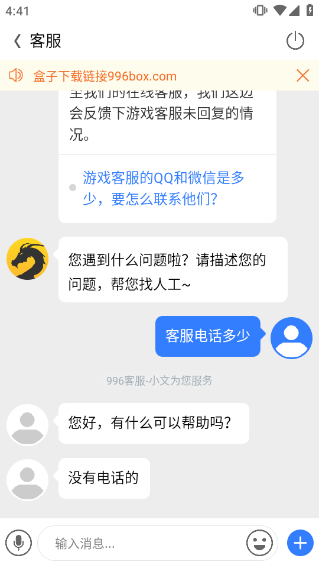 ps:996传奇盒子没有客服电话,可直接在app中与客服在线交流