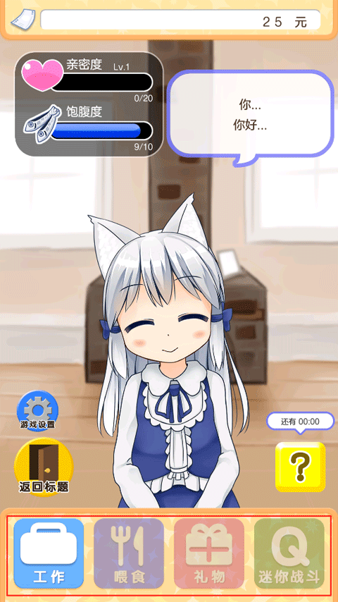 这款游戏总共分为工作、喂食、礼物以及迷你战斗这几种玩法。