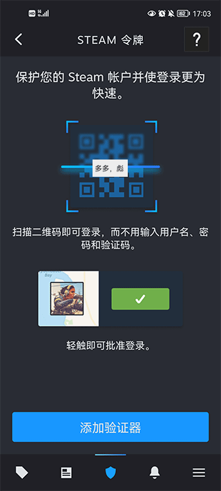 4、如果您使用手机的相机应用程序扫描Steam二维码,该应用程序现在将导航到Steam卫士扫描页面