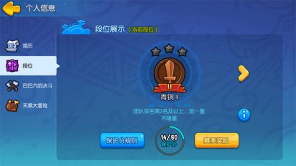 作为新手,我感觉这款游戏上手很快,但想要在段位上提升可能需要更多策略和团队配合。目前的段位系统青铜到金蘑菇虽然激励玩家进步,但个人觉得连胜制度可以改进,比如改为连胜三把加一颗星,同时增加团队模式,这样能更强调合作,让刷分变得更简单。