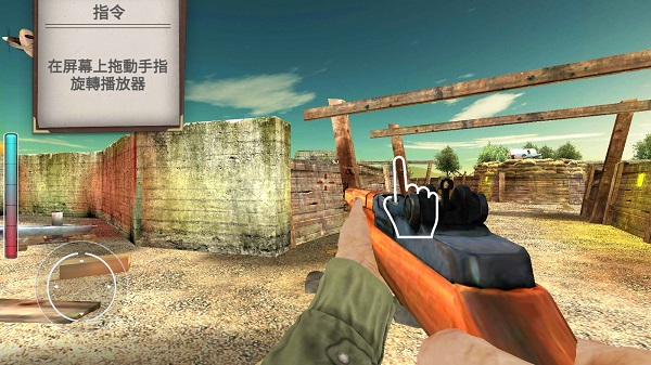 5、拖动左侧虚拟摇杆,控制士兵前后左右的移动。在屏幕上,拖动手指可转换视角。