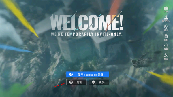 3、进入游戏后,进入后点击“游客”登录;