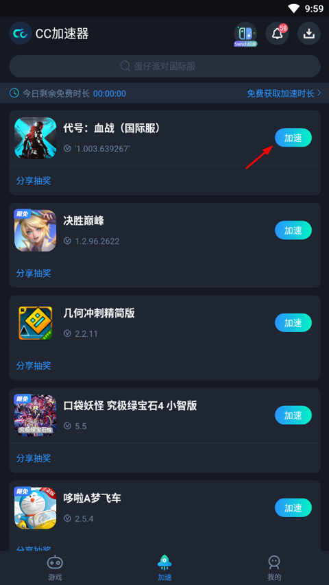 1、在本站下载代号血战免实名认证版,游戏需加速器启动,打开CC加速器,找到该游戏,然后点击右侧加速;