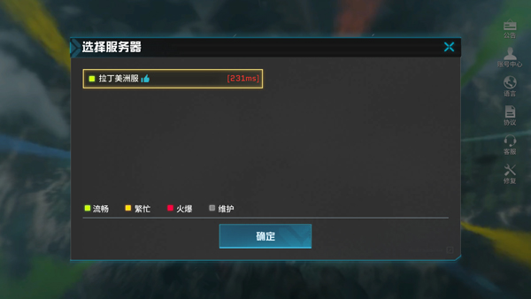 4、游戏暂时只有拉丁美洲服,点击确定;