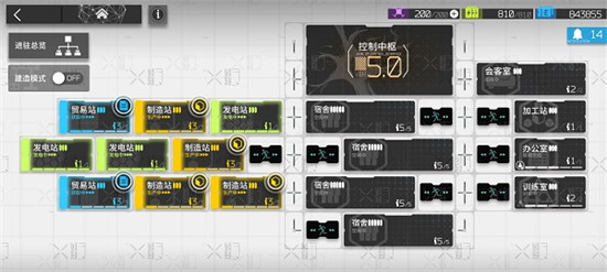 玩家可在罗德岛基建场景中建造制造站、加工站与发电站。制造站能够花费特定时间为代价生产技能概要、赤金、作战记录等道具。加工站则可以通过消耗龙门币对若干低等级素材进行加工,使之变为高等级素材。发电站则是为其他设施提供电力,发电站制约着其他设施的等级提升。玩家可以通过升级制造站与加工站来获取更高级素材的制造/加工配方并扩充站内进驻干员的数量上限;