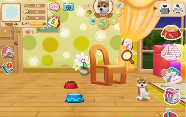 1、道具使用想要伺候好狗狗就需要食物、水、沐浴露等道具,而和1代不同,游戏前期道具都需要玩家在商城中购买,这里狗粮=增加饥饱度、水=增加饥渴度、沐浴露=增加清洁值、玩具=增加狗狗心情,而需要注意的是我们也可以通过点击抚摸狗狗的方式让他们心情更好。