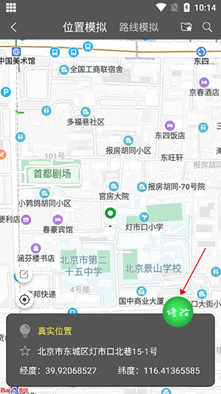 5、在地图中找到模拟定位的位置,支持经纬度和名称寻找,然后点击修改就可以了。