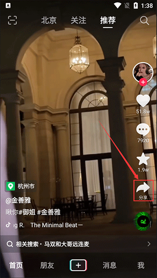 步骤一、在短视频平台软件中点击“分享”